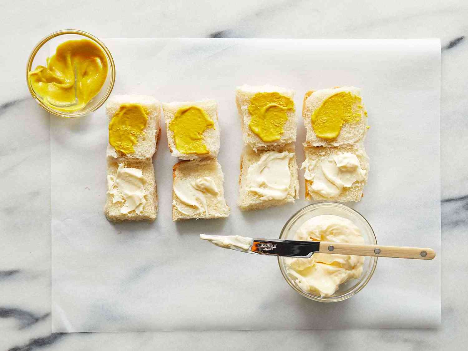 - Step 1:Split the sandwich rolls in half, and spread mustard and mayonnaise liberally onto the cut sides. Dotdash Meredith Food Studios