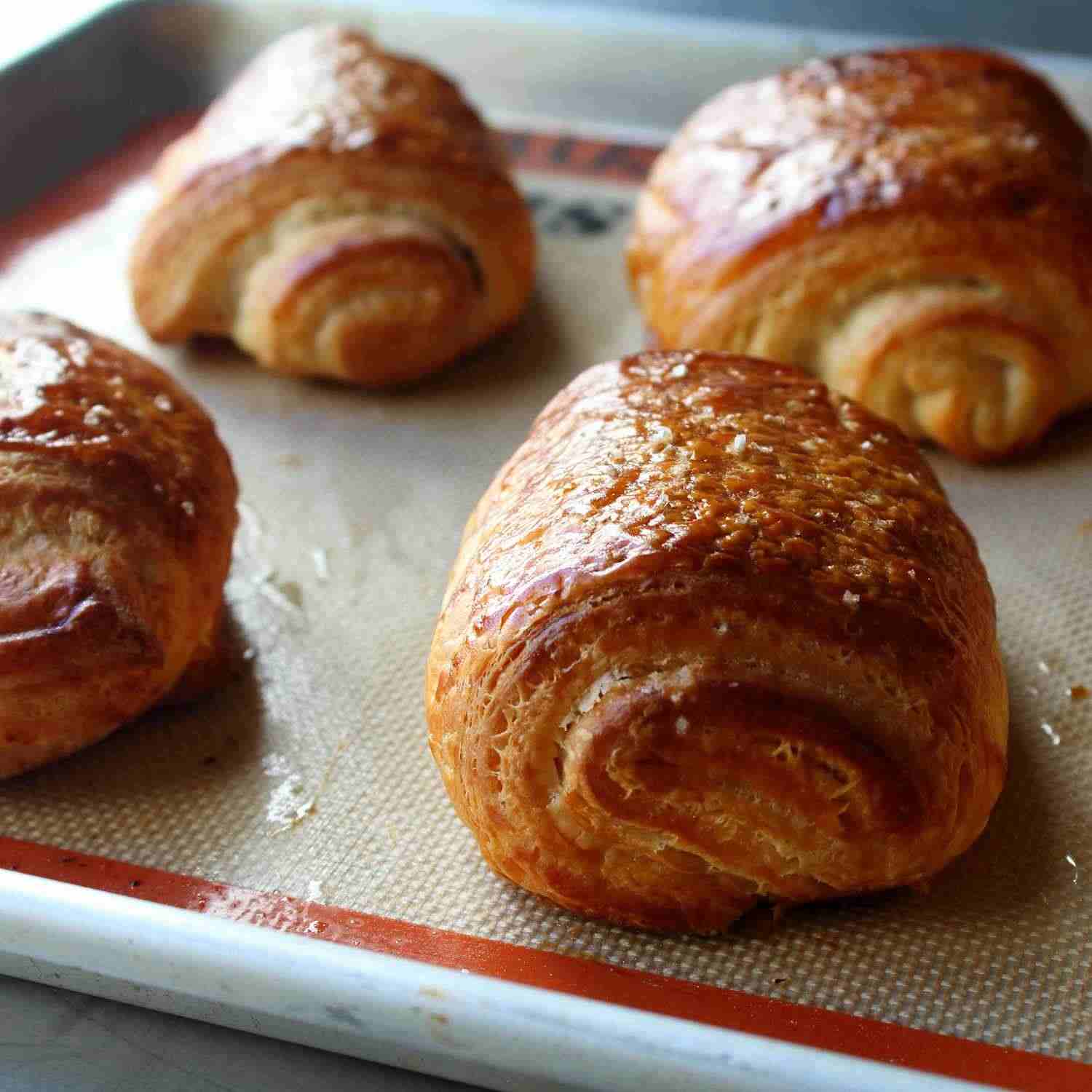 - Step 12:Place shaped croissants on baking sheets lined with silicone mats. Whisk together egg and 1 tablespoon water to make the egg wash. Brush croissants with a large portion of the egg wash. Place in a warm area to allow them to rise, 60 to 90 minutes.